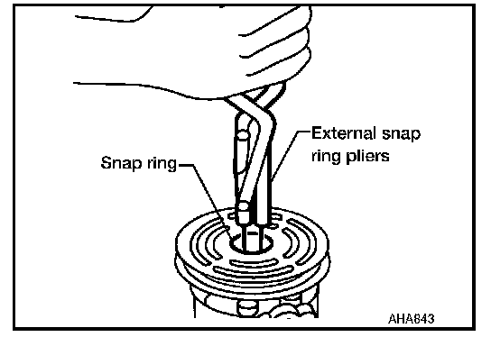 - Remove the snap ring using external snap ring pliers.