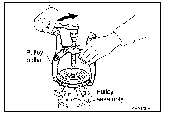 To prevent deformation of the pulley groove, the puller claws should be hooked under (not into) the pulley groove.
