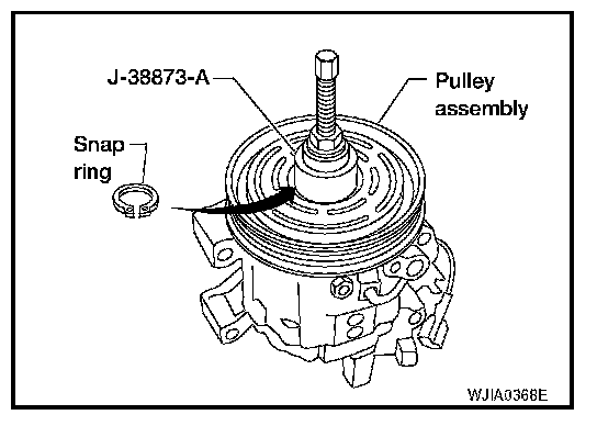 - Install the pulley assembly using the installer, and then install the snap ring using snap ring pliers.