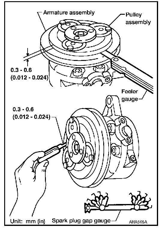 Clutch disc-to-pulley clearance : 0.3 - 0.6 mm (0.012 - 0.024 in)