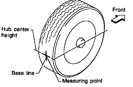 3. Put a mark on base line of the tread (rear side) of both tires at the same height of hub center. This mark is a measuring point.