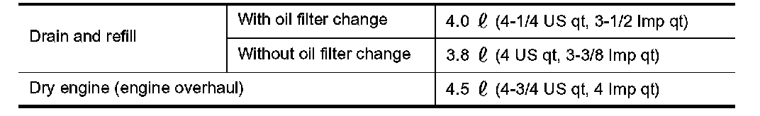 ^ The refill capacity depends on the oil temperature and drain time. Use these specifications for reference only.
