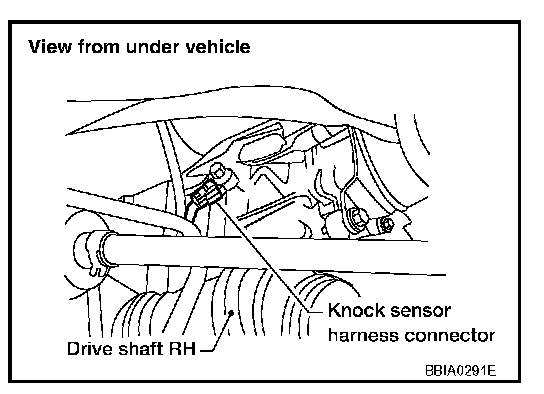 The knock sensor is attached to the cylinder block. It senses engine knocking using a piezoelectric element. A knocking vibration from the cylinder block is sensed as vibrational pressure. This pressure is converted into a voltage signal and sent to the ECM.