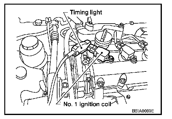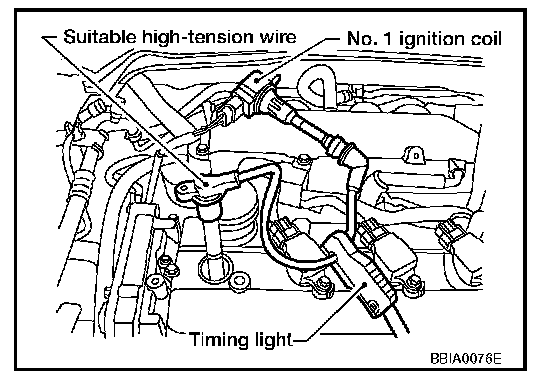 2. Attach timing light to the ignition coil No. 1 wires as shown in the figure.