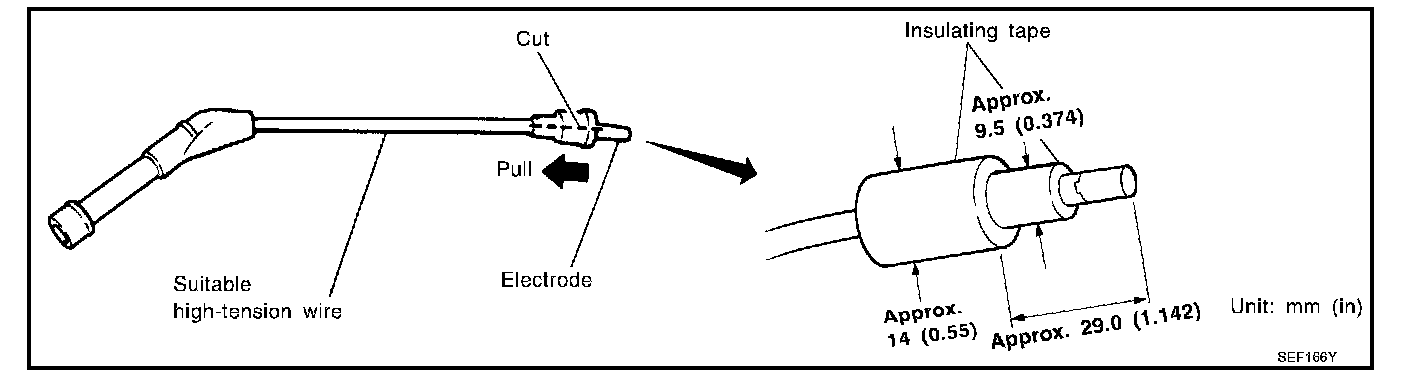 2. Connect No. 1 ignition coil and No. 1 spark plug with suitable high-tension wire as shown, and attach timing light clamp to this wire.