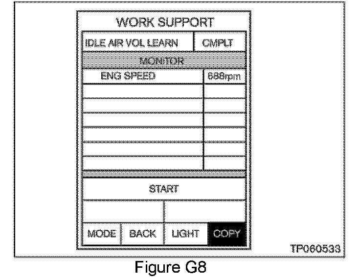 g. Select [WORK SUPPORT] > [IDLE AIR VOL LEARN]