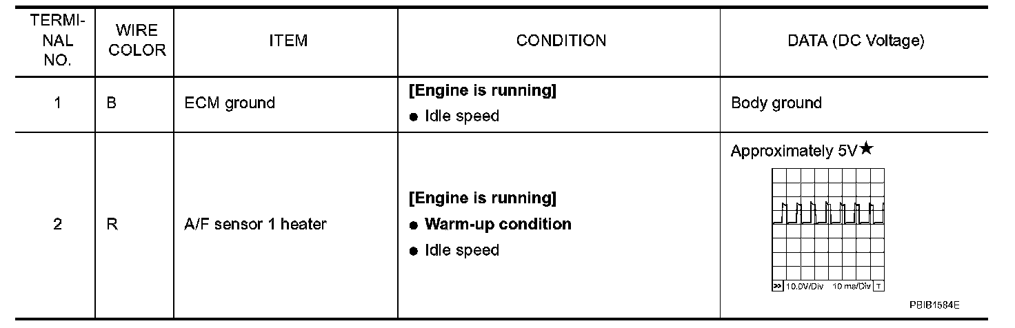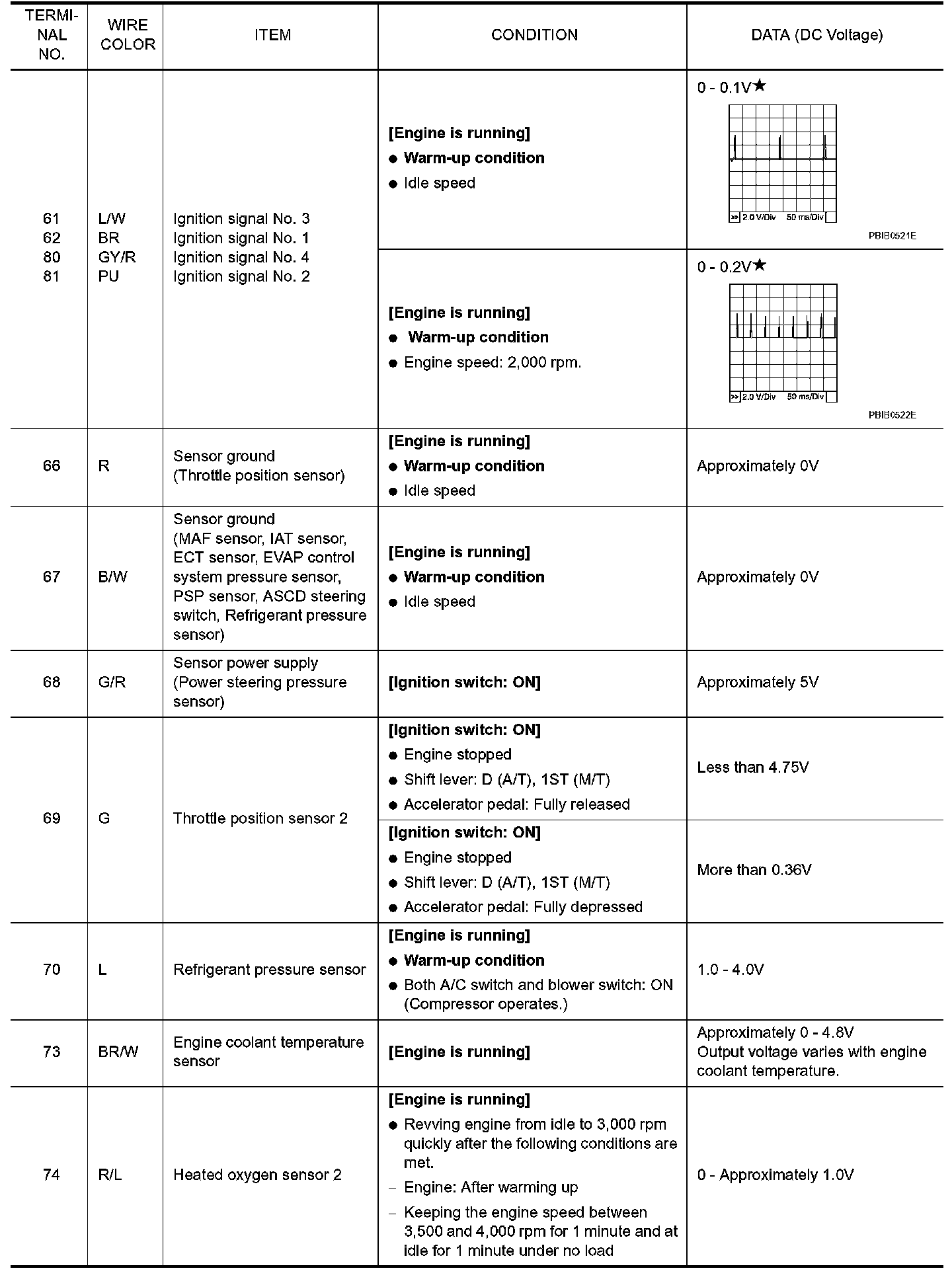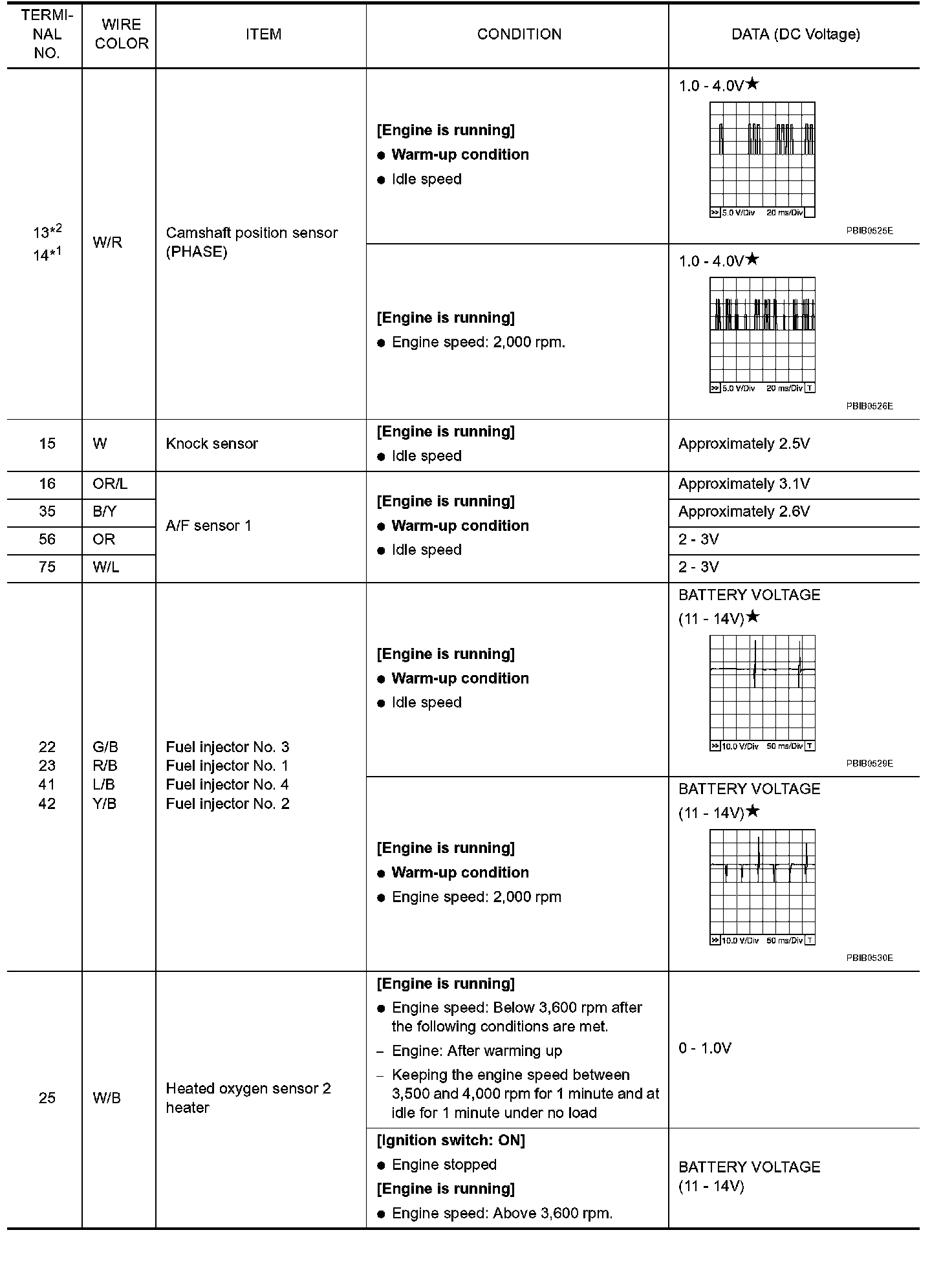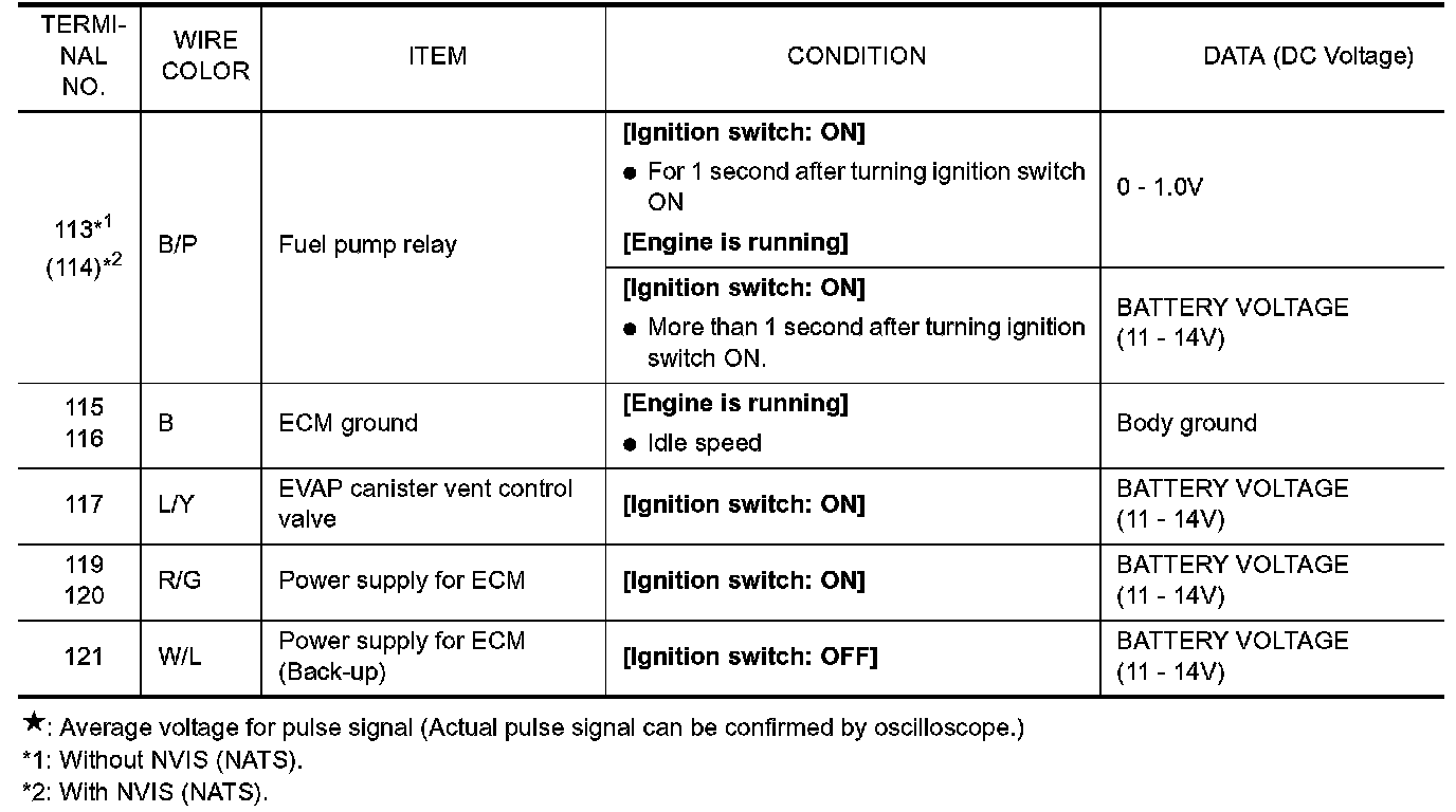 Specification data are reference values and are measured between each terminal and ground. Pulse signal is measured by CONSULT-II.