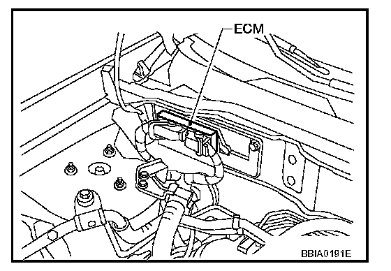 1. ECM is located in the right side of the cowl top (behind the strut tower).