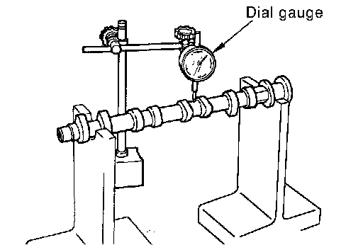 3. Turn camshaft in one direction by hand, and measure the camshaft runout on the dial gauge total indicator reading.