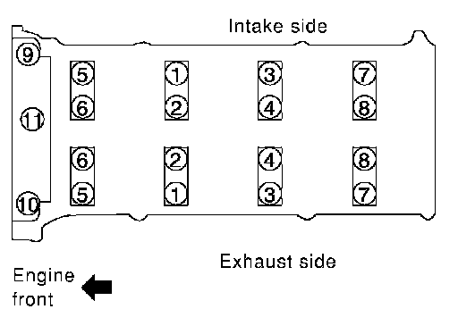 2. Tighten the camshaft bracket bolts to the specified torque following the tightening pattern as shown.