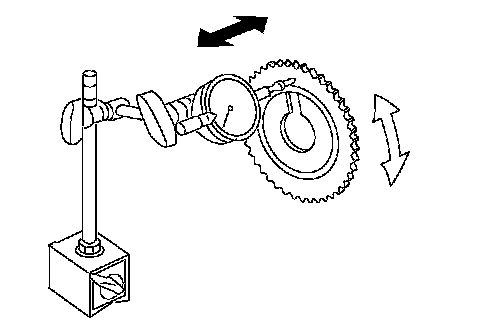 3. Measure camshaft sprocket runout while turning the camshaft by hand.