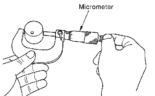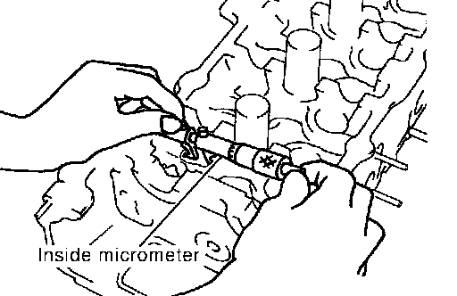 ^ Using inside micrometer, measure valve lifter guide bore diameter of cylinder head.