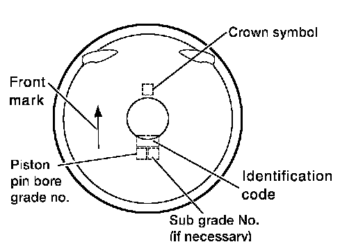 ^ Regarding marks on piston head, refer to EM-173, "HOW TO SELECT A PISTON". How to Select Piston and Bearing