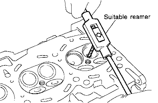 6. Using valve guide reamer, apply reamer finish to valve guide.