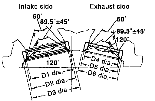 ^ Apply prussian blue (or white lead) onto contacting surface of valve seat to check the condition of the valve contact on the seat surface.