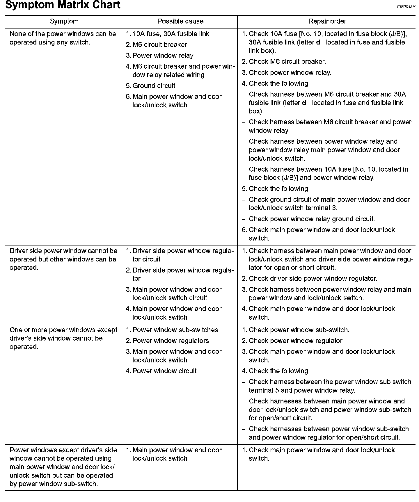 Symptom Matrix Chart: