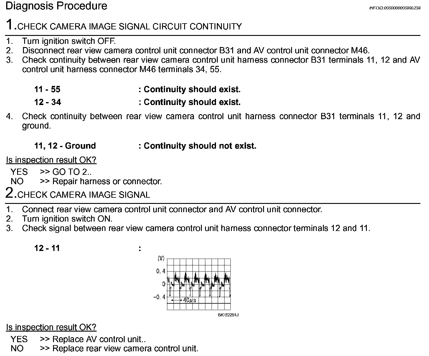 CAMERA IMAGE SIGNAL CIRCUIT (CAMERA CONTROL UNIT TO AV CONTROL UNIT)DescriptionRear view