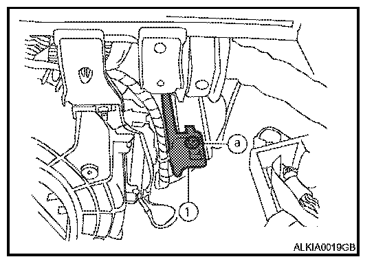 2. Remove the screw (a), lower the bracket and remote keyless entry receiver (1) disconnect the harness and remove.
