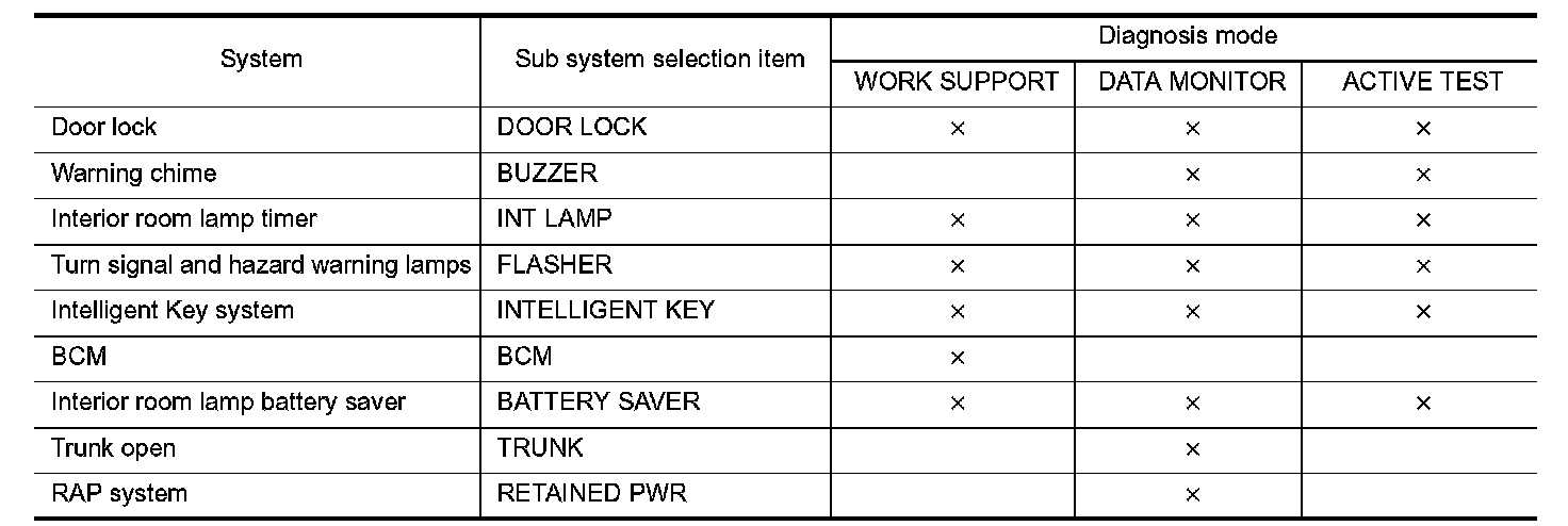 NOTE: It can perform the diagnosis modes except the following for all subsystem selection items.