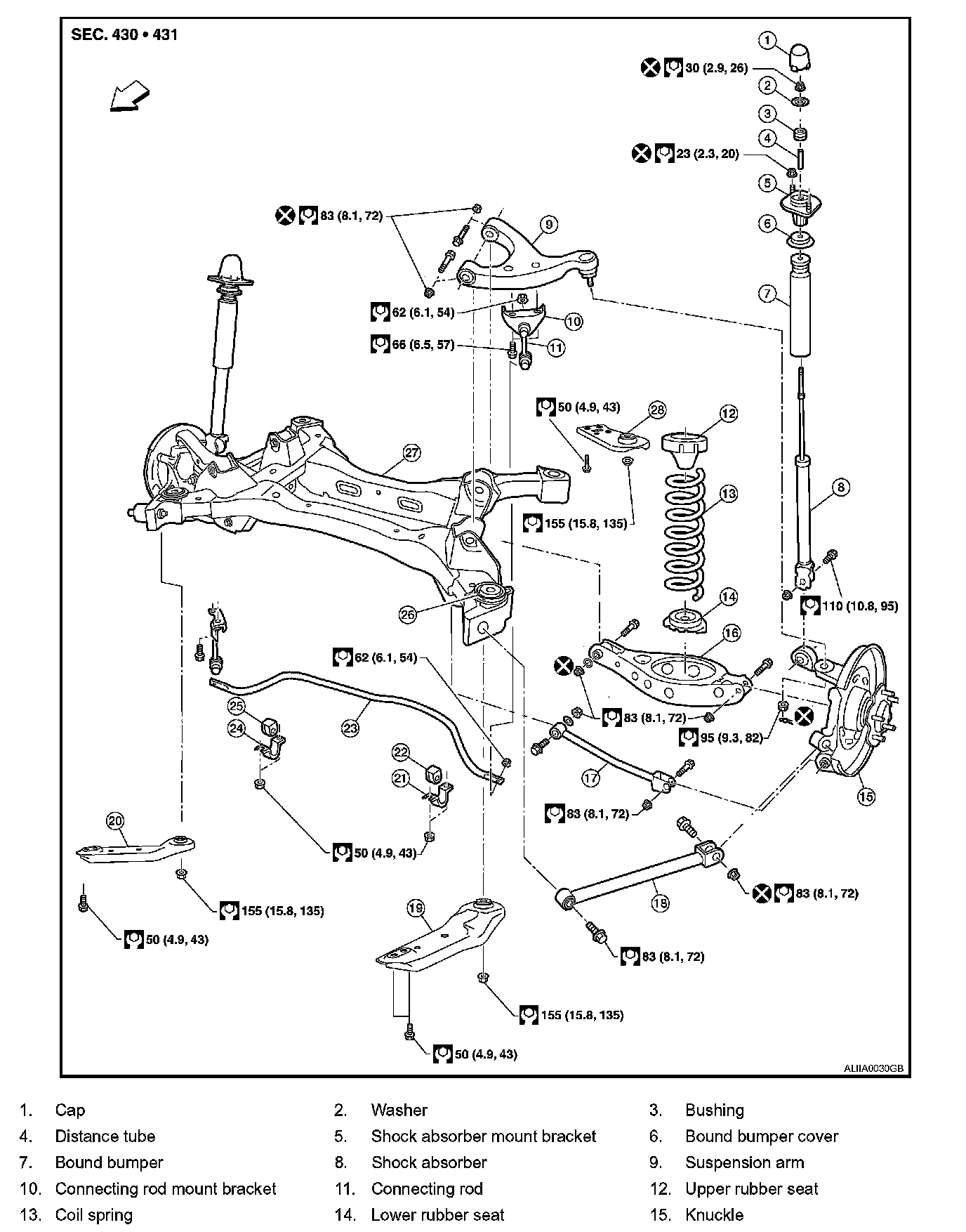 8. Tighten the adjusting bolt nuts to the specified torque. Adjusting bolt nuts: Refer to Exploded View RSU-9.