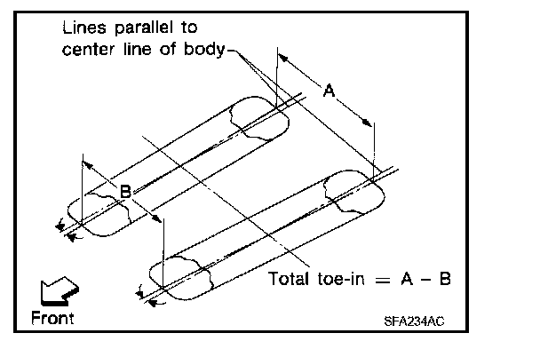 Measure the toe-in using the following procedure. If out of specification, inspect and replace any damaged or worn rear suspension parts before adjusting.