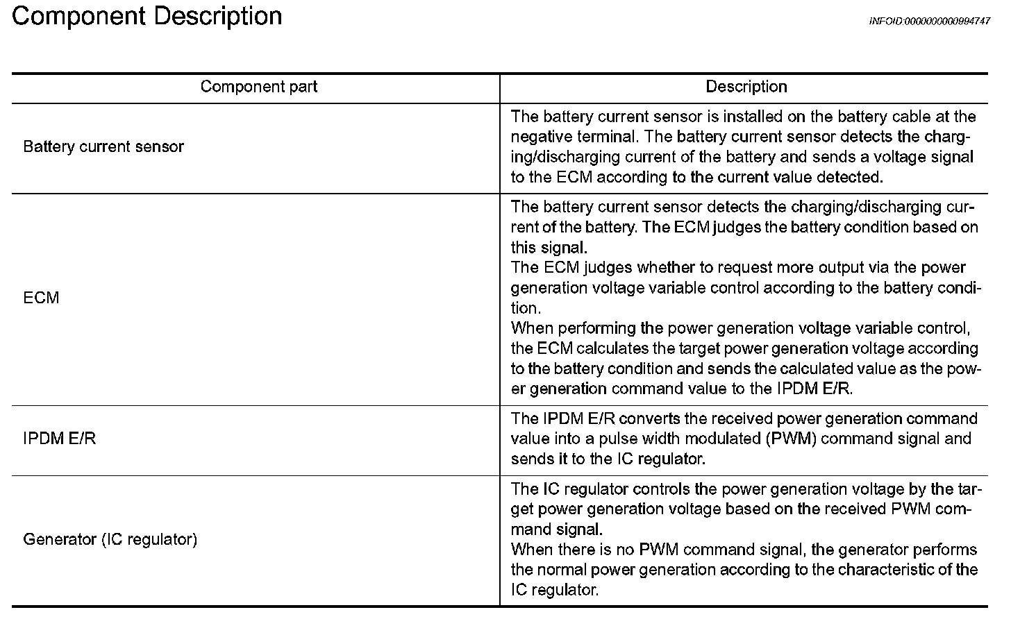 NOTE: When any malfunction is detected in the power generation variable voltage control system, power generation is performed according to the characteristic of the IC regulator in the generator.