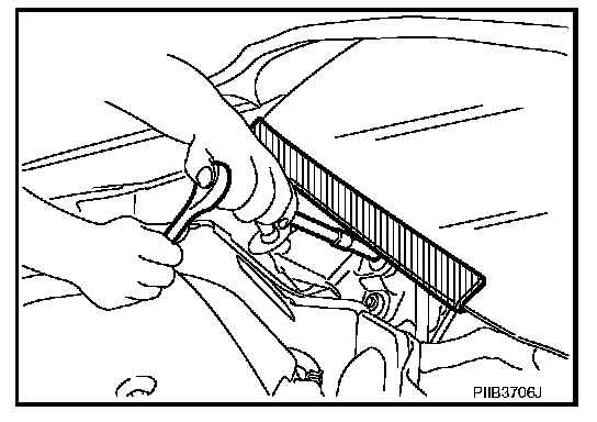 When performing the procedure after removing cowl top cover, cover the lower end of windshield with urethane, etc.