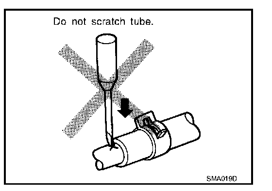 - To prevent damage to rubber hose, do not pry off rubber hose with tapered tool or screwdriver.