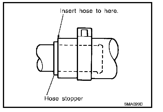 - To reinstall the rubber hose securely, make sure that hose insertion length and orientation is correct. (If tube is equipped with hose stopper, insert rubber hose into tube until it butts up against hose stopper.)