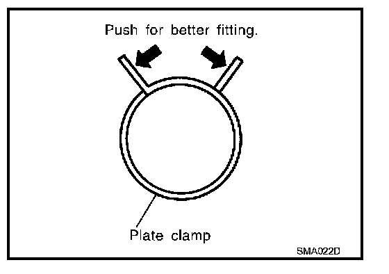 - After installing plate clamps, apply force to them in the direction of the arrow, tightening rubber hose equally all around.