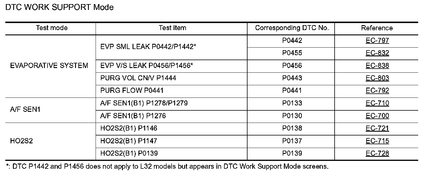 DTC Work Support Mode
