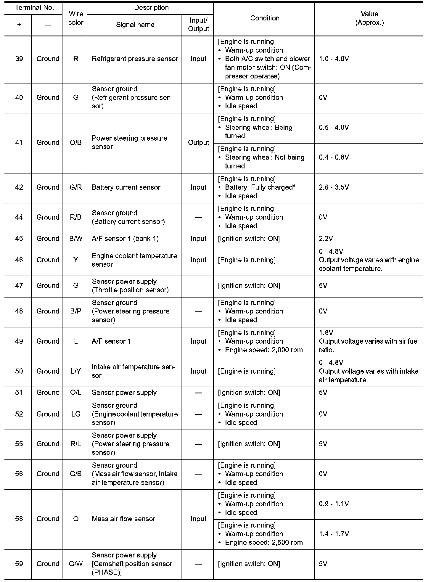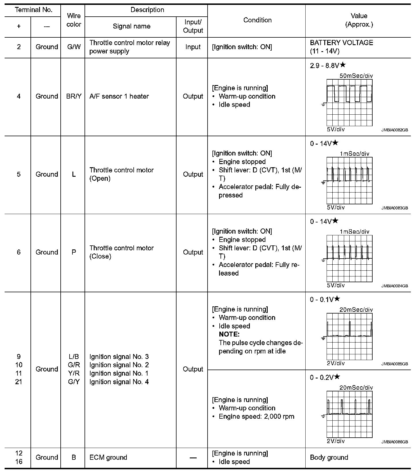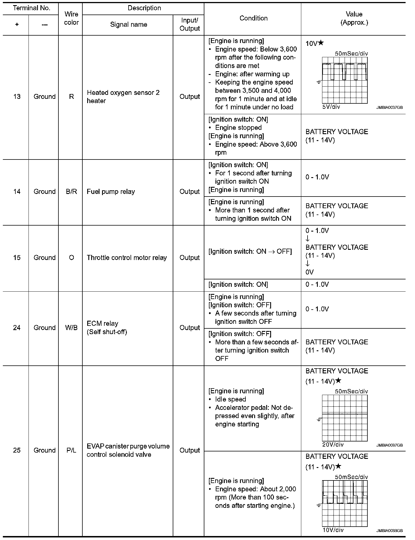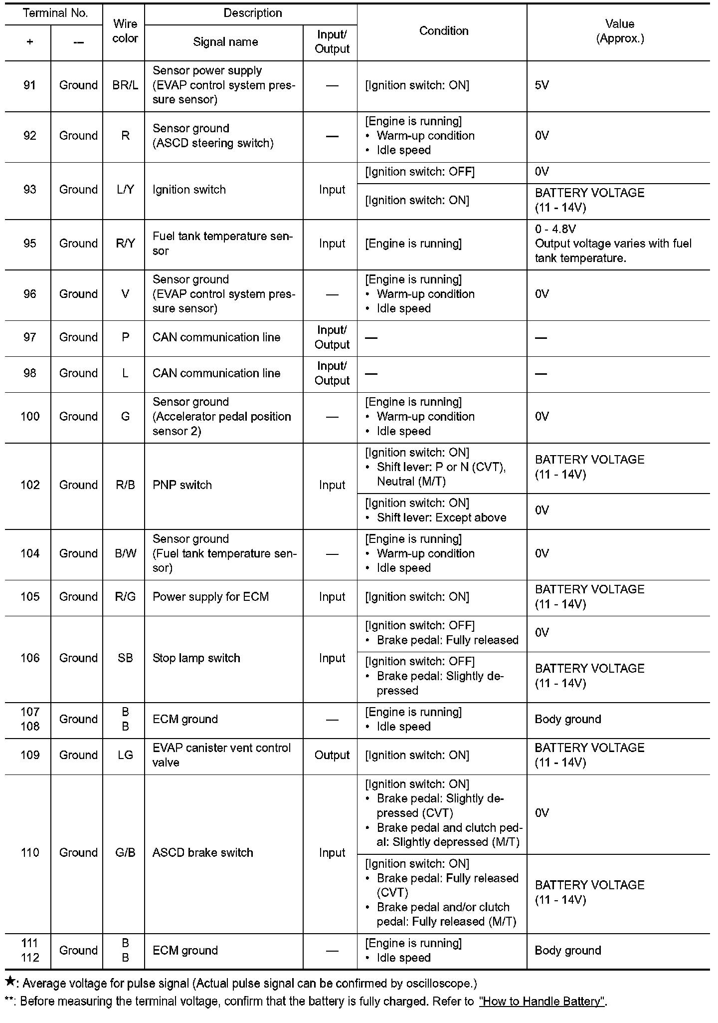 CAUTION: Do not use ECM ground terminals when measuring input/output voltage. Doing so may result in damage to the ECMs transistor. Use a ground other than ECM terminals, such as the ground.