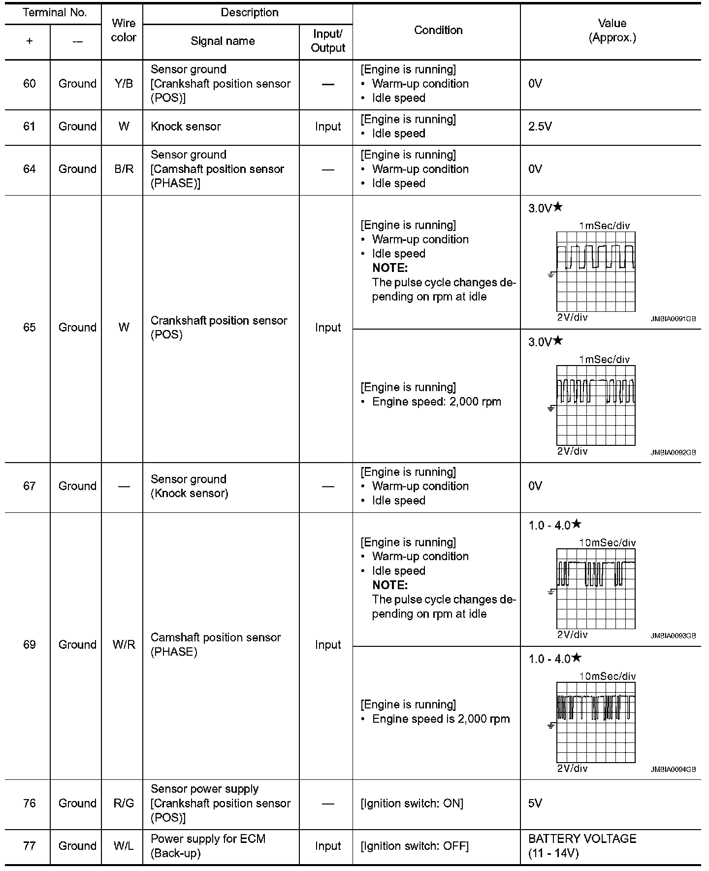 - Pulse signal is measured by CONSULT-III.