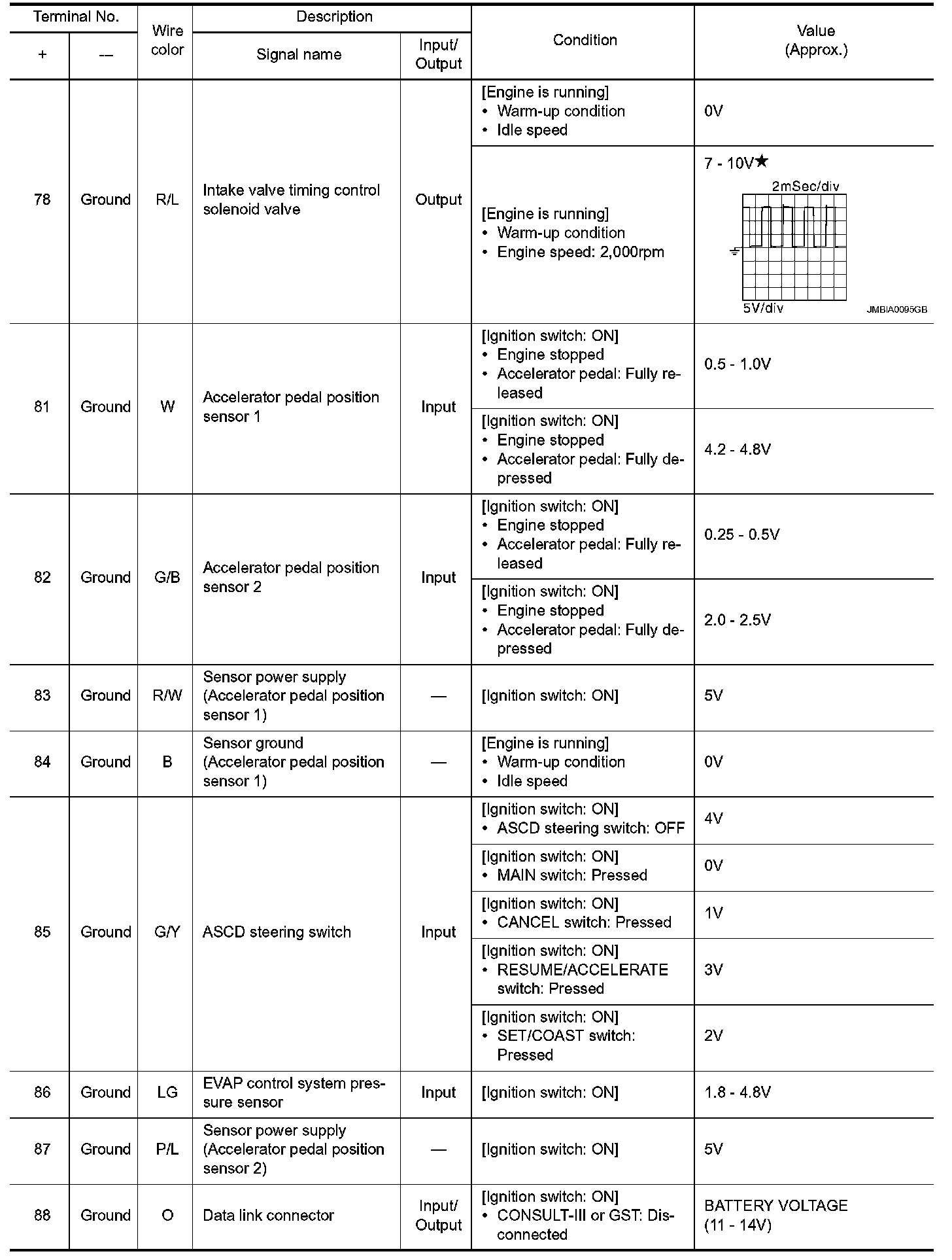 - Specification data are reference values and are measured between each terminal and ground.