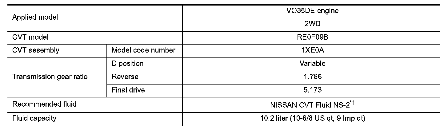 ^ Using CVT fluid other than Genuine NISSAN CVT fluid NS-2 will deteriorate in driveability and CVT durability, and may damage the CVT, which is not covered by the warranty.