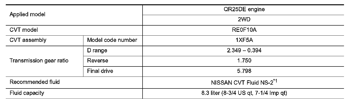 ^ Using CVT fluid other than Genuine NISSAN CVT fluid NS-2 will deteriorate in driveability and CVT durability, and may damage the CVT, which is not covered by the warranty.