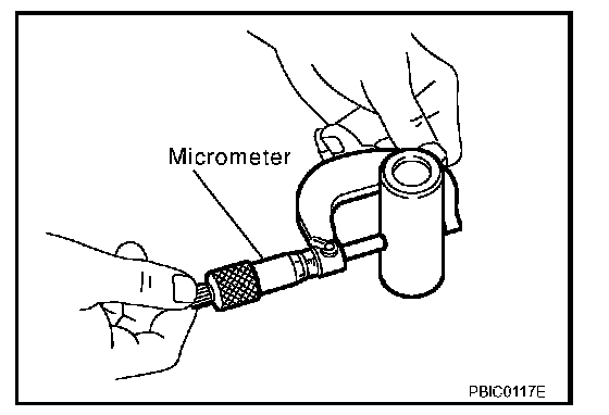 ^ Measure outer diameter of piston pin using a micrometer.
