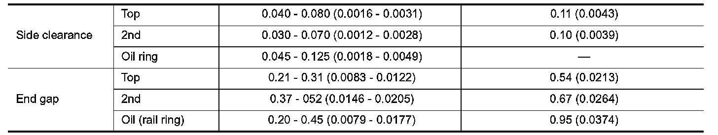 ^ Measurement should be done after cylinder bore cools down.