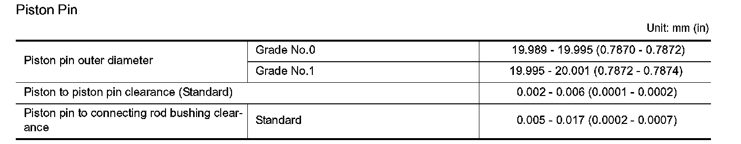 (Piston pin clearance) = (Piston pin bore diameter) - (Outer diameter of piston pin)
