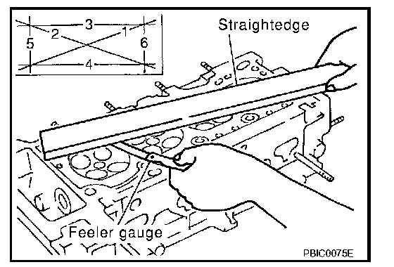 CYLINDER HEAD DISTORTIONWipe off oil and remove water scale deposits, old gasket, old sealer, and carbon with a scraper.