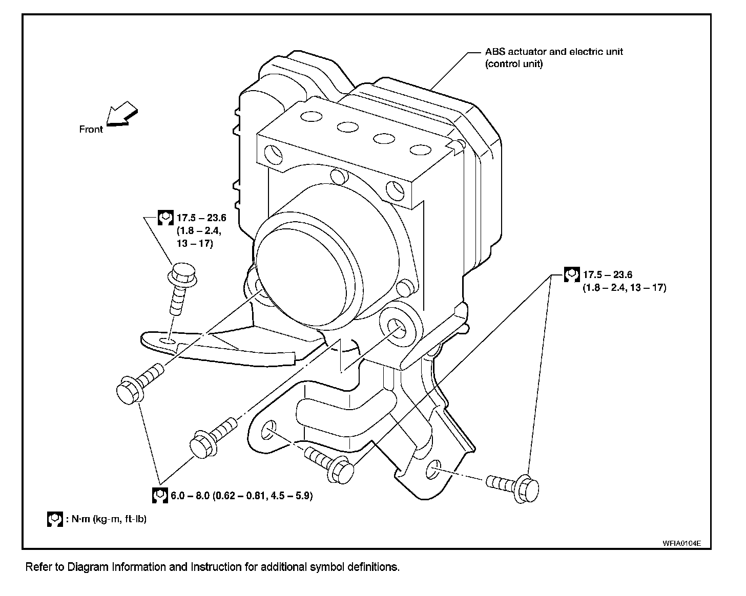 CAUTION: After installation of ABS actuator and electric unit (control unit), refill brake fluid. Then bleed air from system.