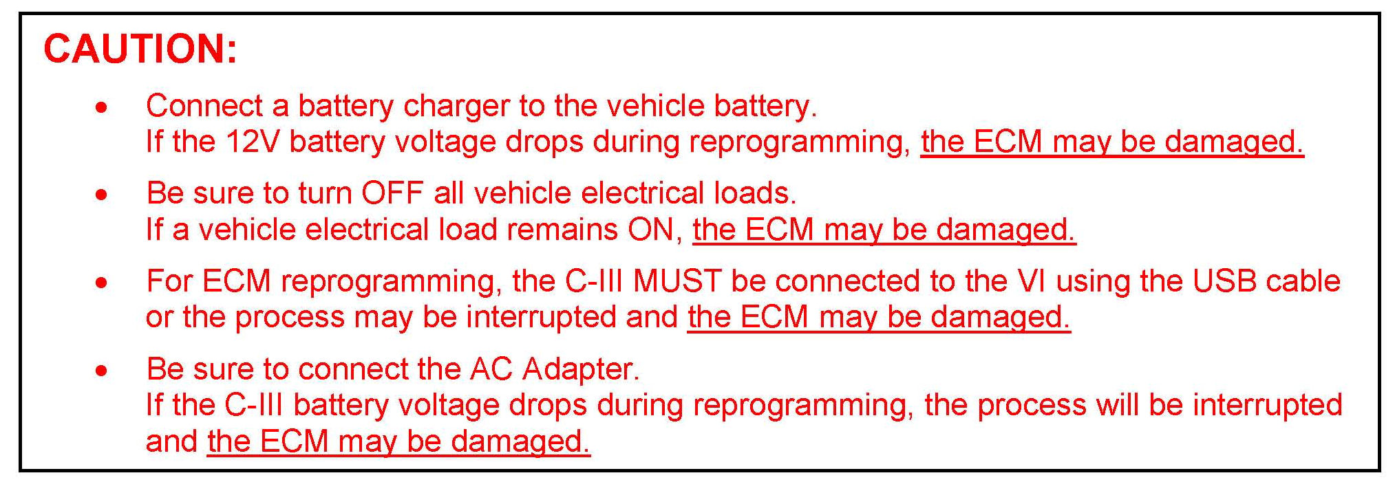 1. Connect C-III to the vehicle to begin the reprogramming procedure.
