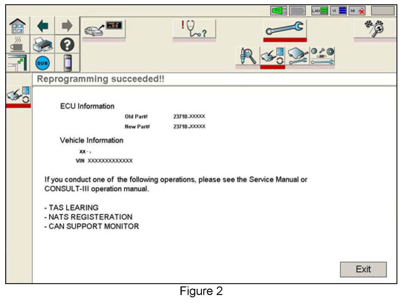 3. If this bulletin applies and you have performed ECM reprogramming, the screen in Figure 2 appears when reprogramming is complete.