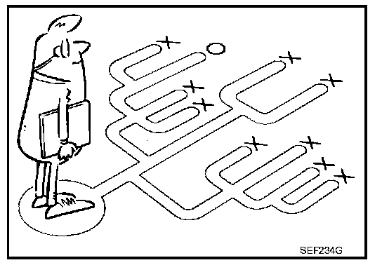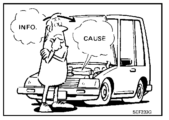 Before undertaking actual checks, take a few minutes to talk with a customer who approaches with a driveability complaint. The customer can supply good information about such incidents, especially intermittent ones. Find out what symptoms are present and under what conditions they occur. A Diagnostic Worksheet like the example on EC-89, "Worksheet Sample" should be used. Example of Diagnosis Sheet