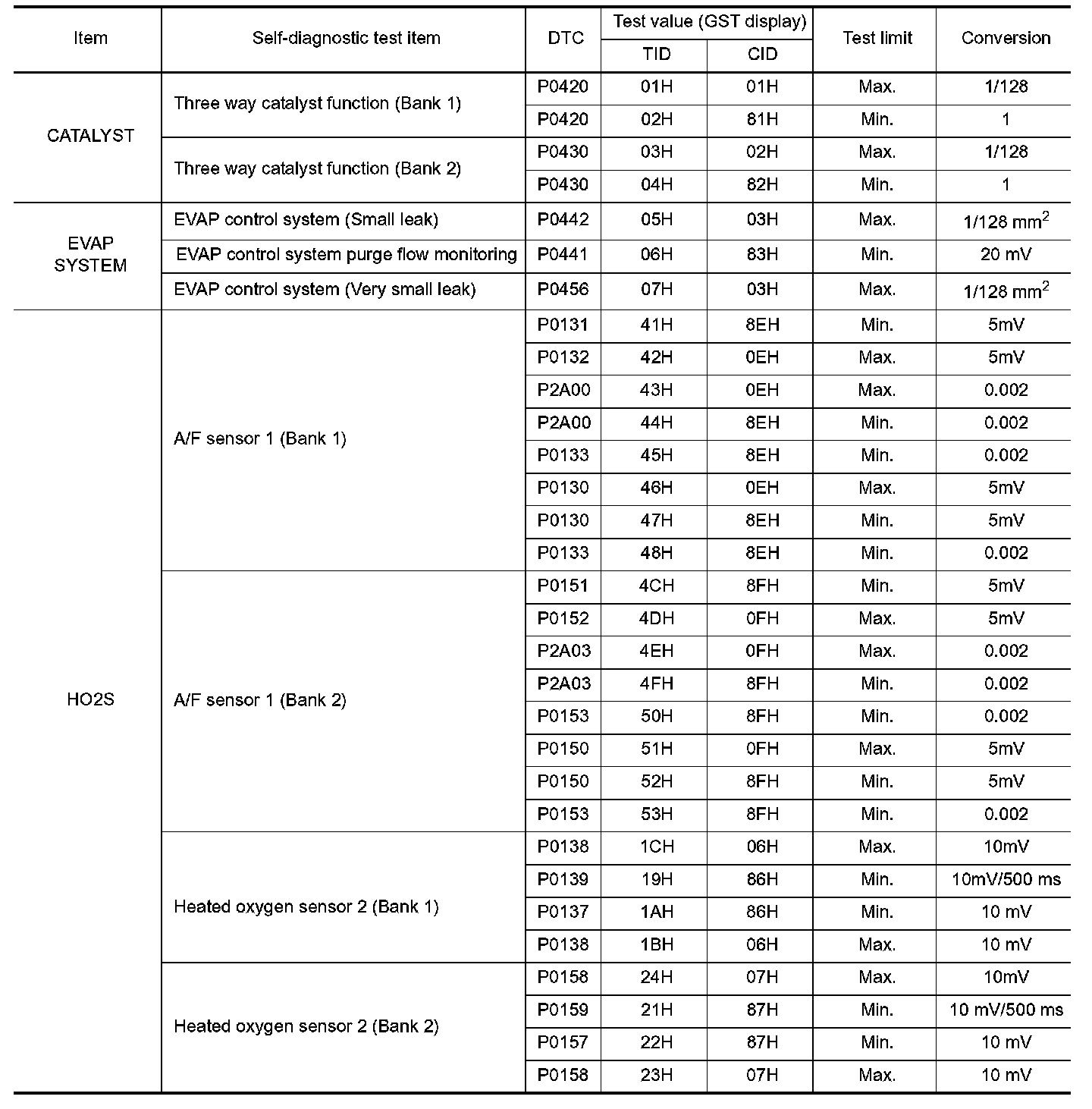 TEST VALUE AND TEST LIMIT (GST ONLY - NOT APPLICABLE TO CONSULT-II)