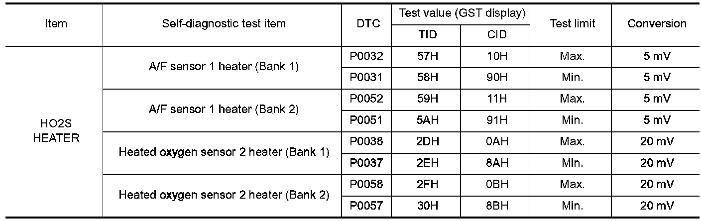 The test value is a parameter used to determine whether a system/circuit diagnostic test is OK or NG while being monitored by the ECM during self-diagnosis. The test limit is a reference value which is specified as the maximum or minimum value and is compared with the test value being monitored.
