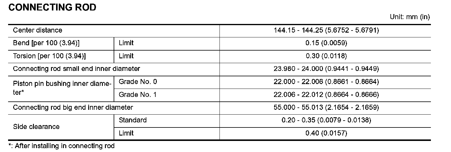 ^ If it exceeds the limit, replace connecting rod assembly.