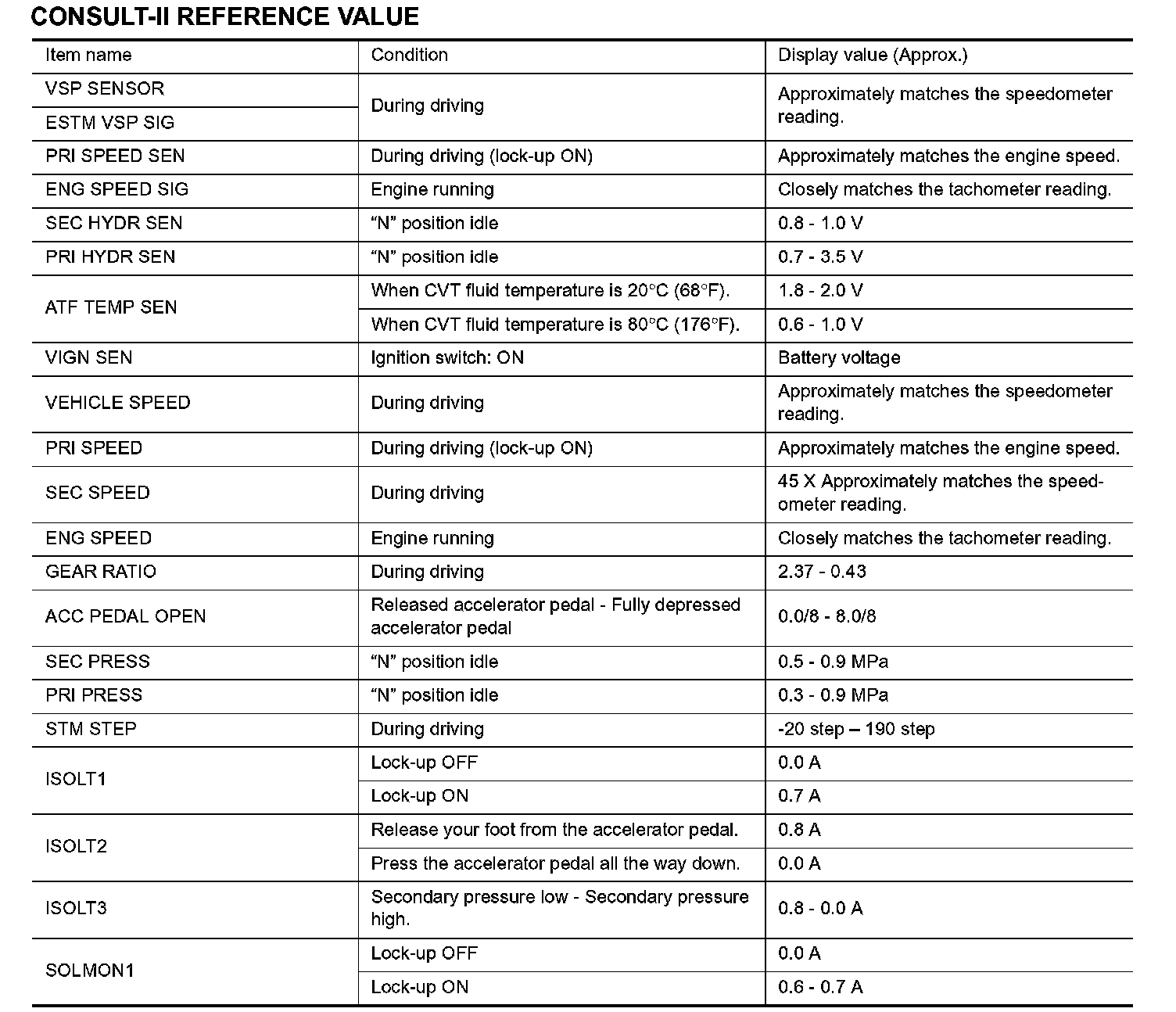 CONSULT-II REFERENCE VALUE (Part 1):