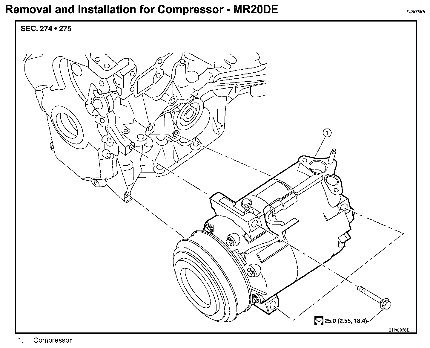 Removal and Installation for Compressor - MR20DERefer to Diagram Information and Instructions for additional symbol definitions. Key to Symbols Used In Illustrations