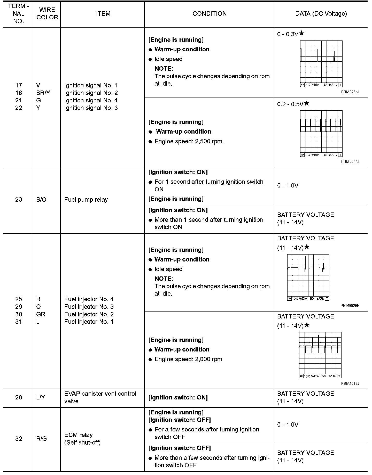 Specification data are reference values and are measured between each terminal and ground. Pulse signal is measured by CONSULT-III.